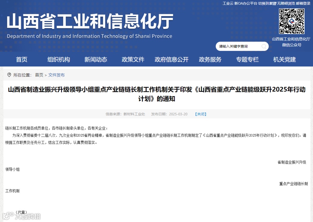 山西省制造业振兴升级领导小组重点产业链链长制工作机制关于印发《山西省重点产业链能级跃升2025年行动计划》的通知