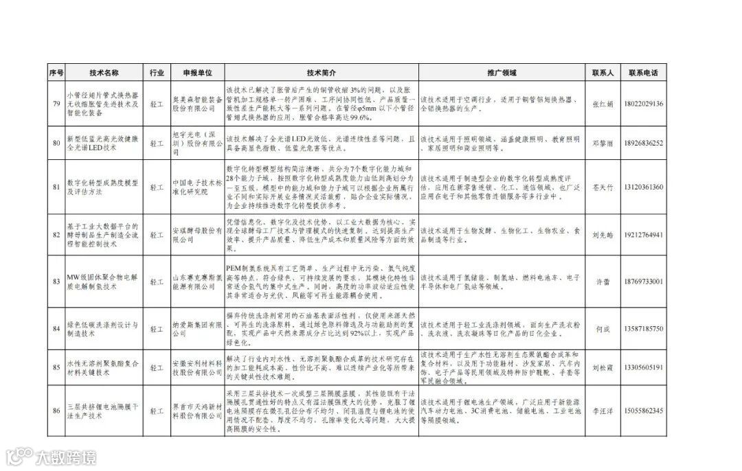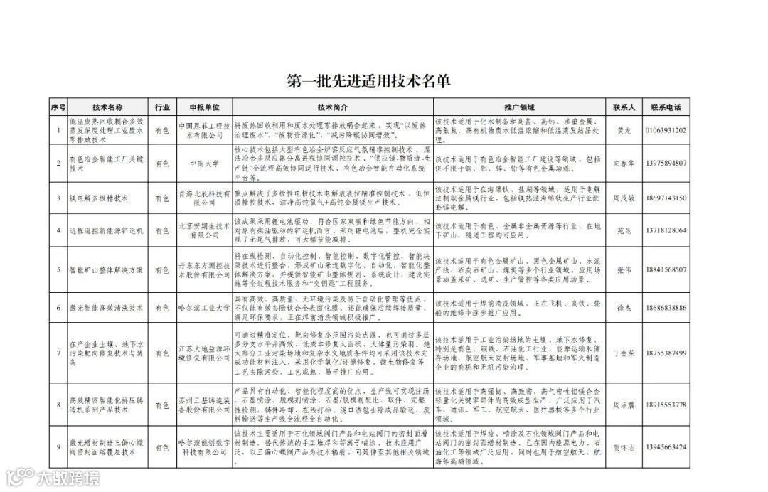 工信部:第一批先进适用技术名单