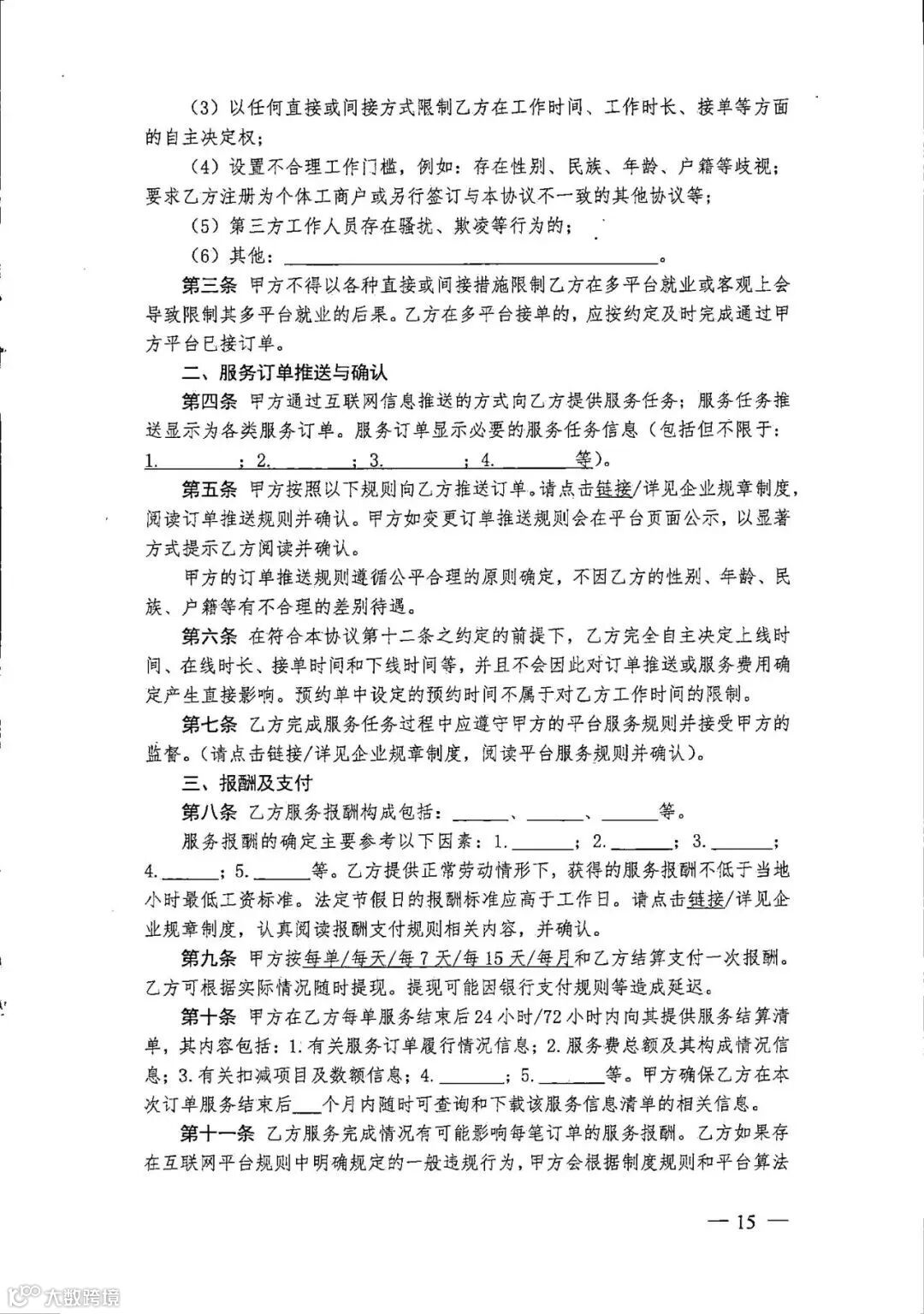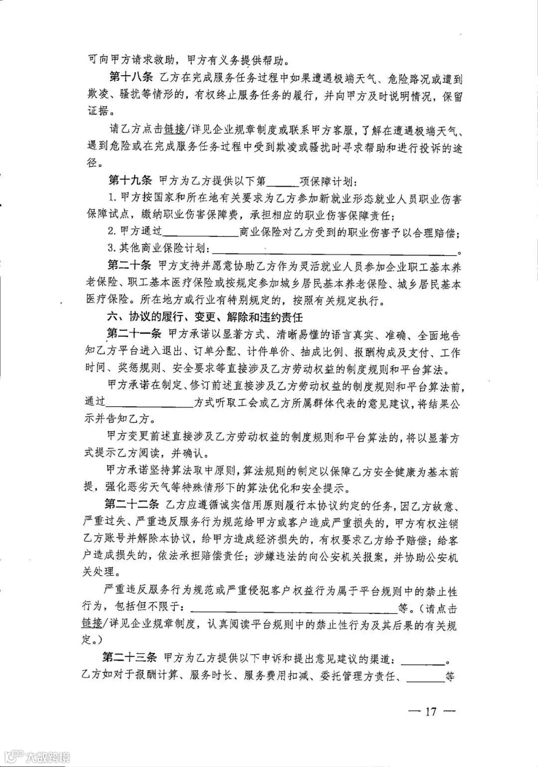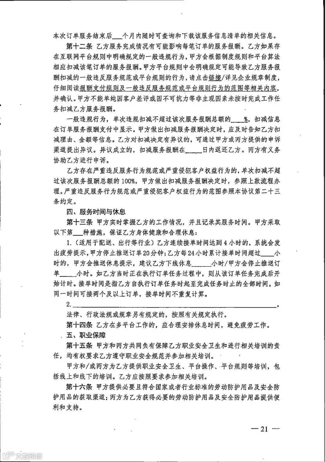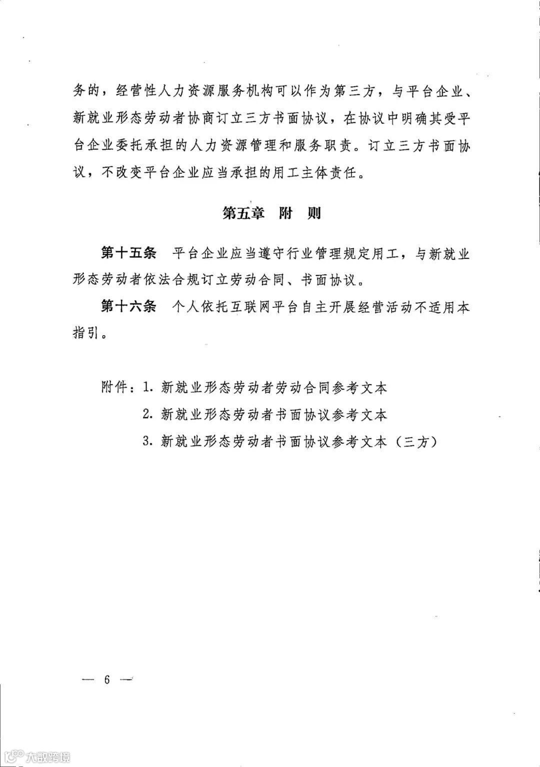 3. 新就业形态劳动者书面协议参考文本(三方)