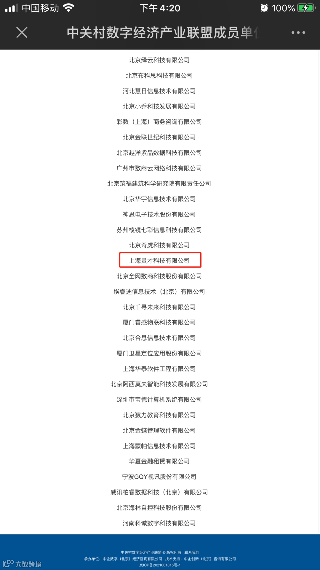 上海灵才科技有限公司正式成为北京“中关村数字经济产业联盟”协会的理事单位一员,未来将与全国中大型知名企业共聚一堂,共铸辉煌。