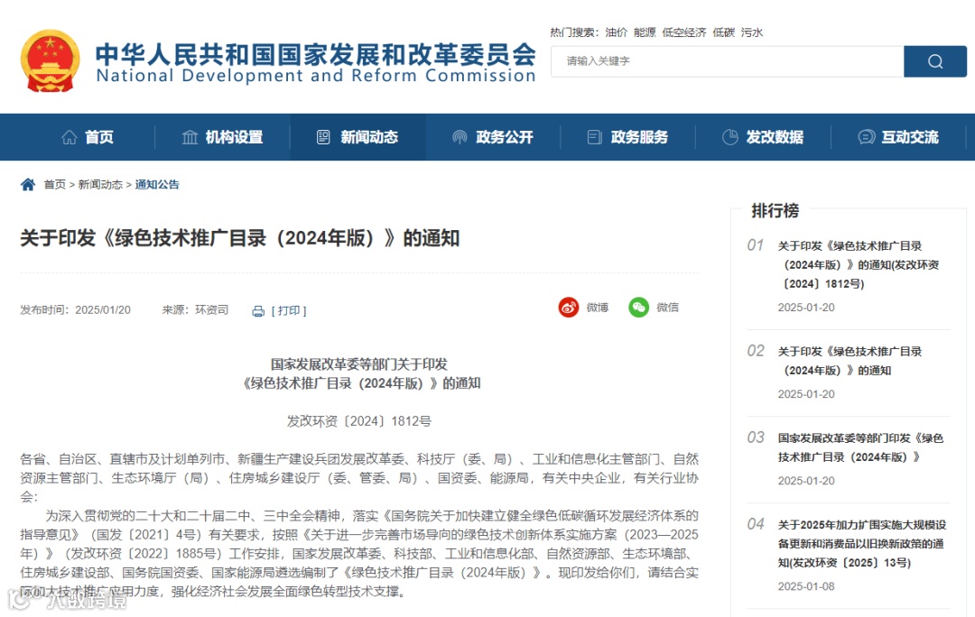国家发改委等八部门发布《绿色技术推广目录(2024年版)》