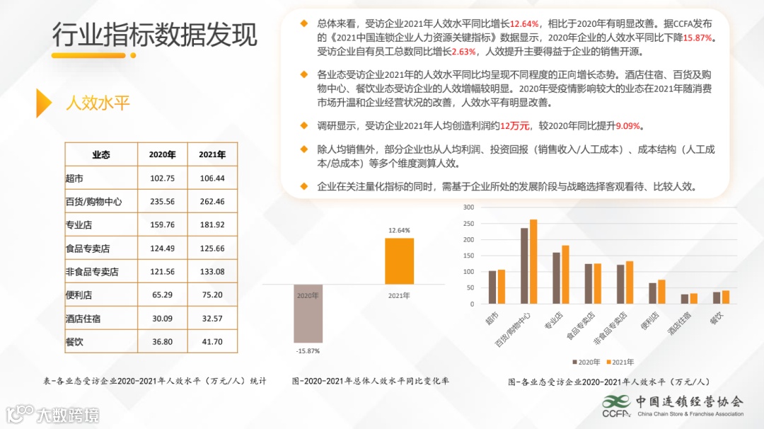 指标数据显示,2021年,餐饮灵活用工占比为19.82%,便利店灵活用工占比17.49%,超市、百货/购物中心、专业店、食品专卖店、非食品专卖店灵活用工占比分别为11.42%、6.19%、13.47%、10%、4.28%,均略高于2020年的占比。