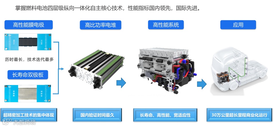 公司拥有氢能及燃料电池自主核心技术 ,技术渊远流长、迭代次数多、涵盖范围广 。