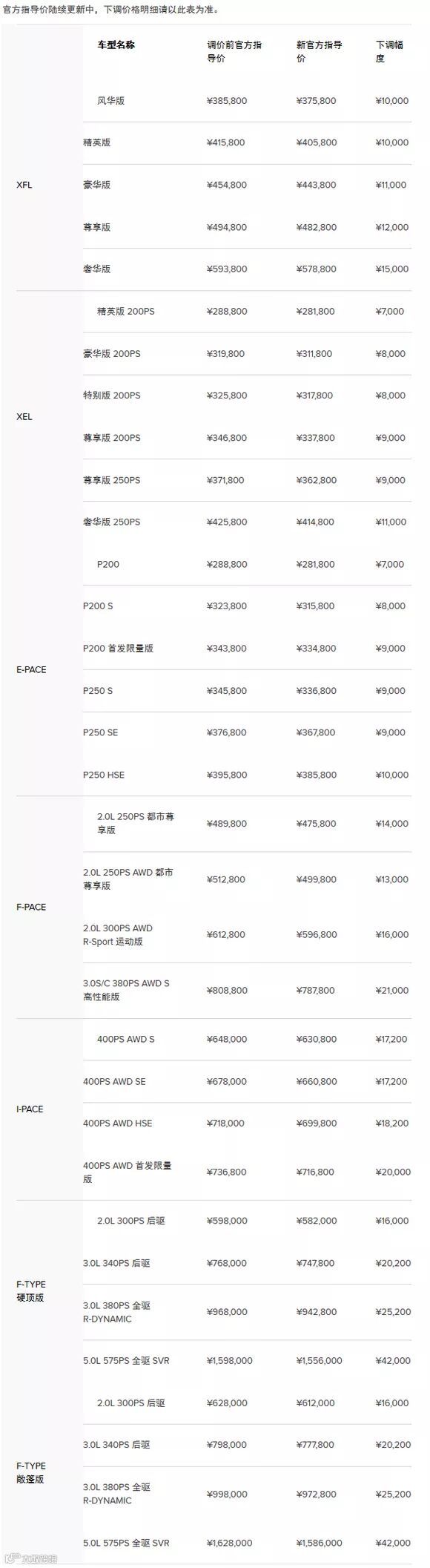 捷豹路虎下调建议零售价情况。