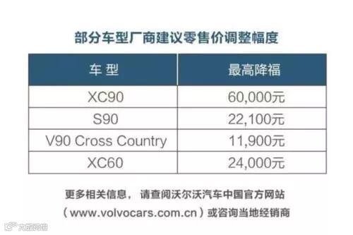 沃尔沃下调建议零售价情况。