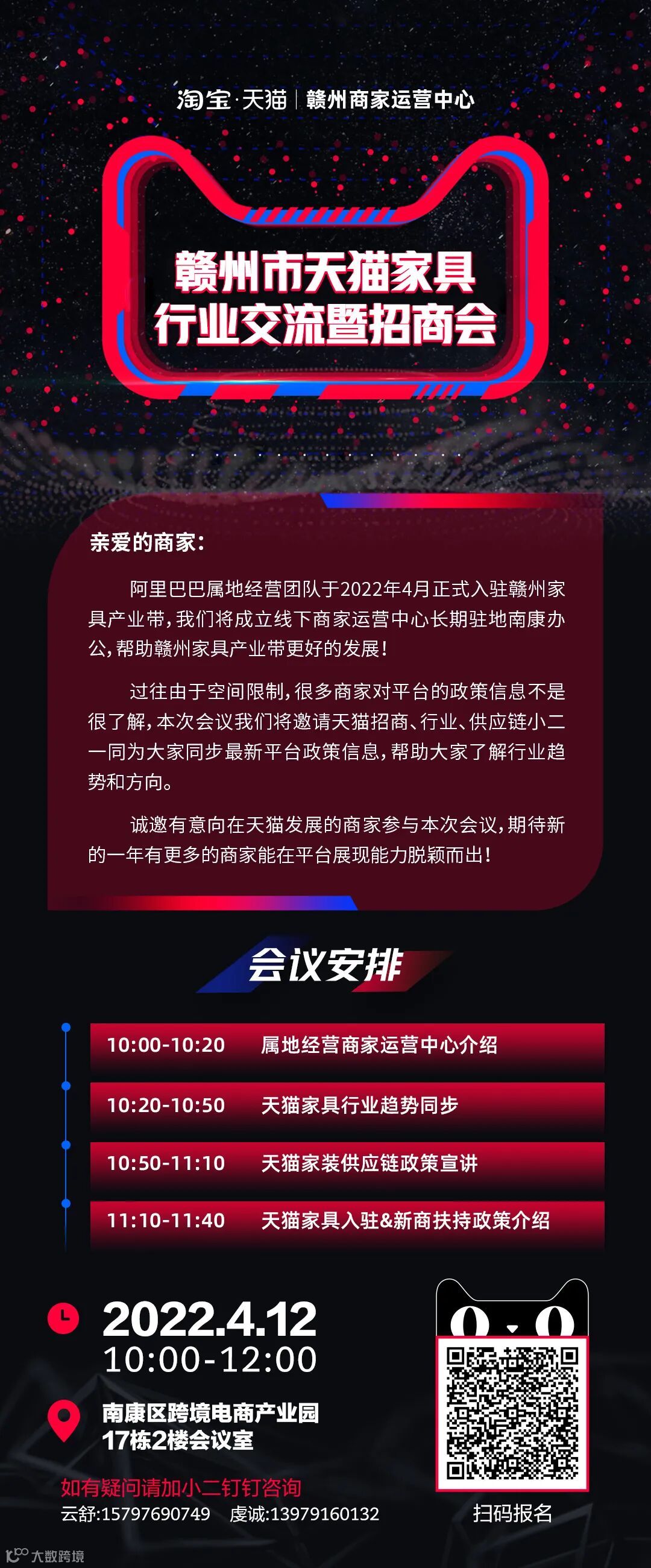 如何在激烈的品牌竞争中脱颖而出?2022年4月,阿里巴巴属地经营团队正式入驻赣州家具产业带,成立线下商家运营中心长期驻地南康,并于4月12日在南康跨境电商产业园举行“赣州市天猫家具行业交流暨招商会”,与天猫招商、行业、供应链小二一同为赣州家具商家同步最新的平台政策、讲解行业最新趋势与方向,助推赣州家具产业带更好发展!
