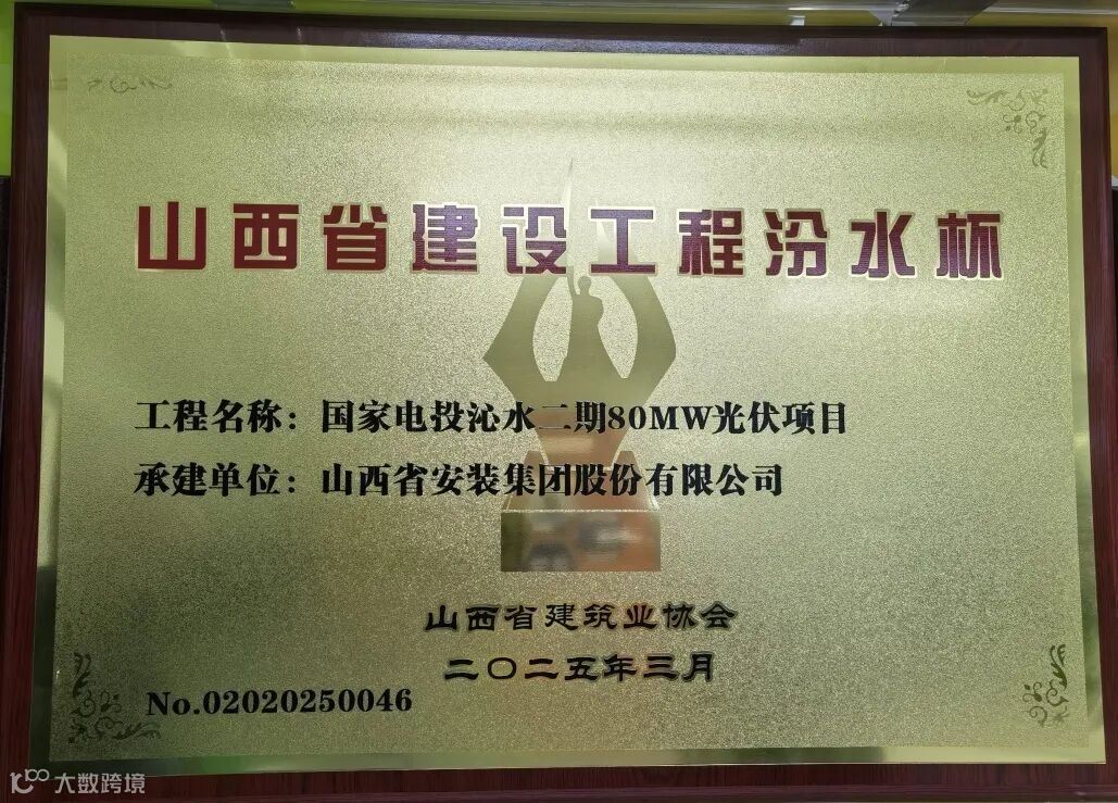 近期,山西新能源公司沁水二期80MW光伏项目凭借卓越的工程品质,成功荣获山西省建设工程质量最高荣誉——“汾水杯奖”。
