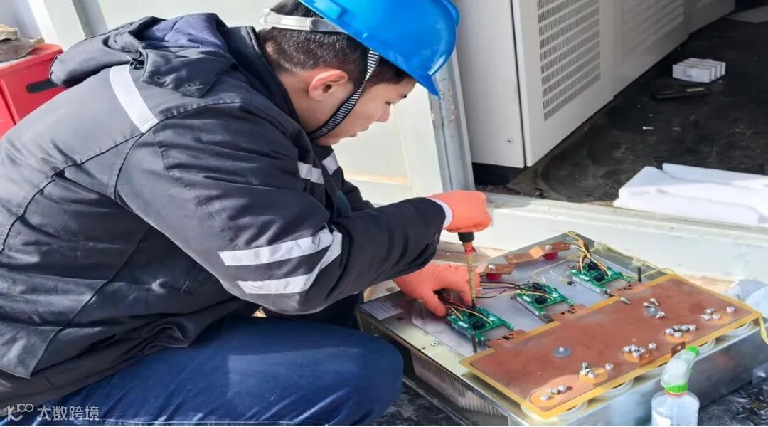 四子王旗维检中心站主运检员金士奇正在对逆变器的IGBT功率单元模块进行更换作业,确保发电设备在节日期间稳定运行。