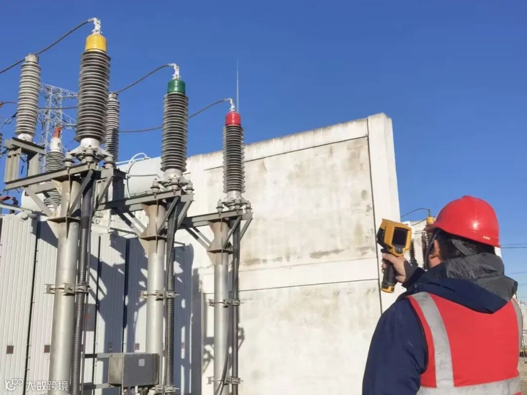 辛口维检中心王旭和樊一诺对主变进行巡检,手持红外测温仪,对主变的接线端子进行精准测温,排查设备发热隐患。
