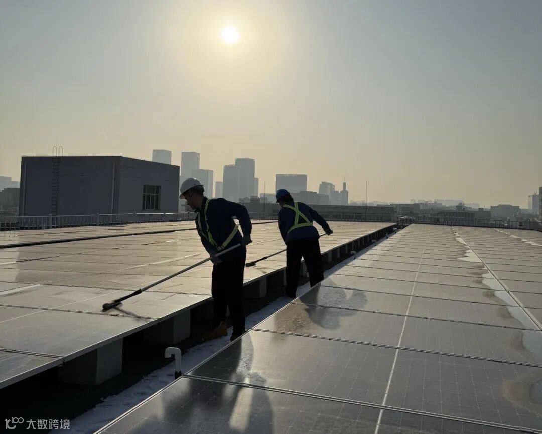 亦庄同仁堂项目值班人员开展组件清洗工作。
