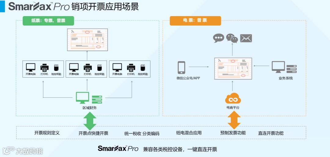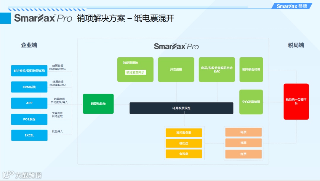 1)纸电票混开:ERP系统/项目管理系统、CRM系统、APP,POS系统自动读取或导入、EXCEL表格批量导入,生成结算单---待开发票预览,一键直连开票。