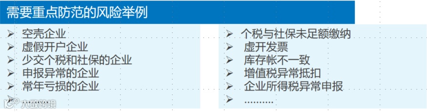 总结来说金税四期就是企业全面信用评价+及时监控预警+重点风险指标扫描+人工智能筛查、自动生成风险清单,集成共享式的大数据应用,高度信息化云化。