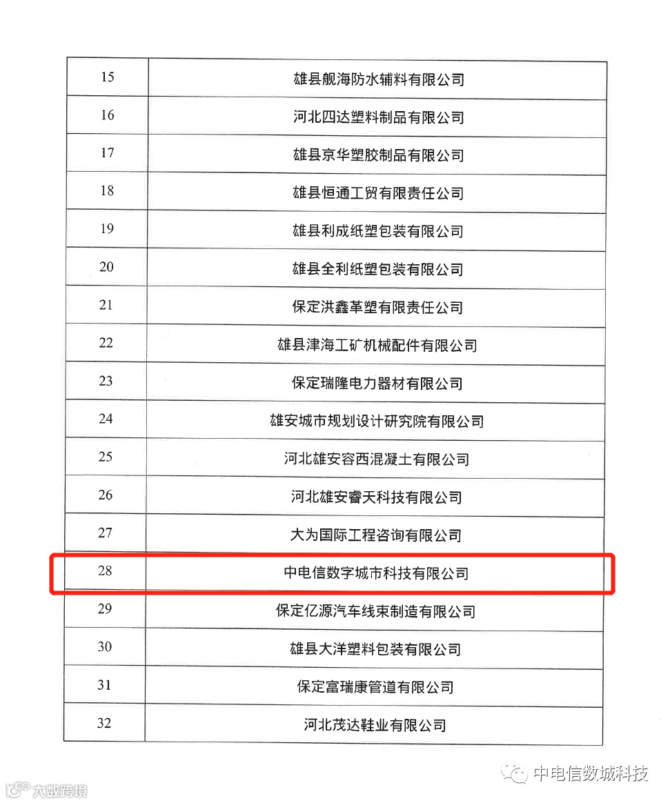 中电信数城科技公司成功列入雄安新区“专精特新”企业培育库