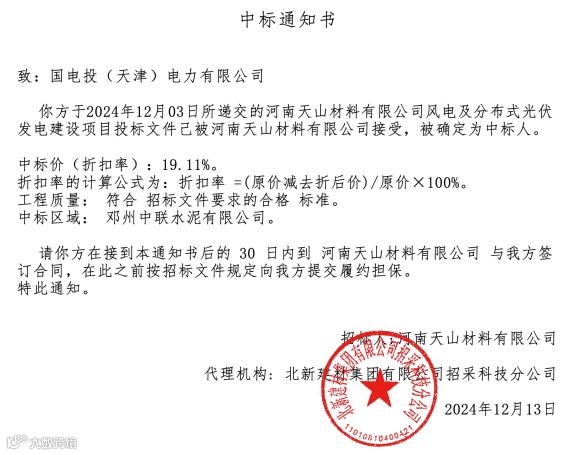 12月13日,河南邓州中联水泥源网荷储一体化项目投资主体招标通过邓州中联水泥有限公司上级单位评审,天津电力公司已取得该项目投资主体的中标通知书,标志着锁定邓州中联水泥源网荷储一体化项目开发权。