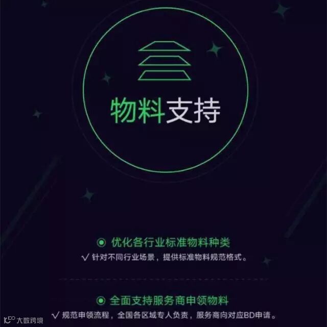 针对不同行业场景,优化各行业标准物料种类,提供标准物料规范格式,并全面支持服务商申领物料。