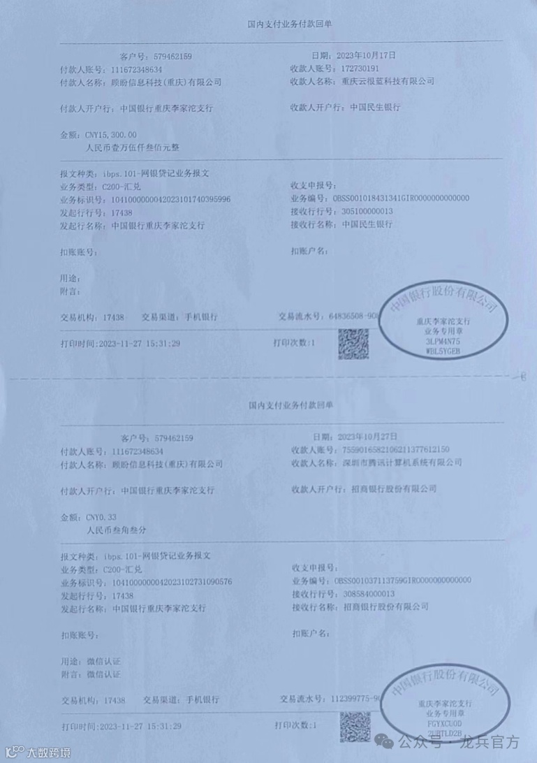 蒋总得知真相后,主动与我公司说明情况,配合我公司对盗版公司的追责问题!并主动向我公司提供盗版公司合同和转款记录截图: