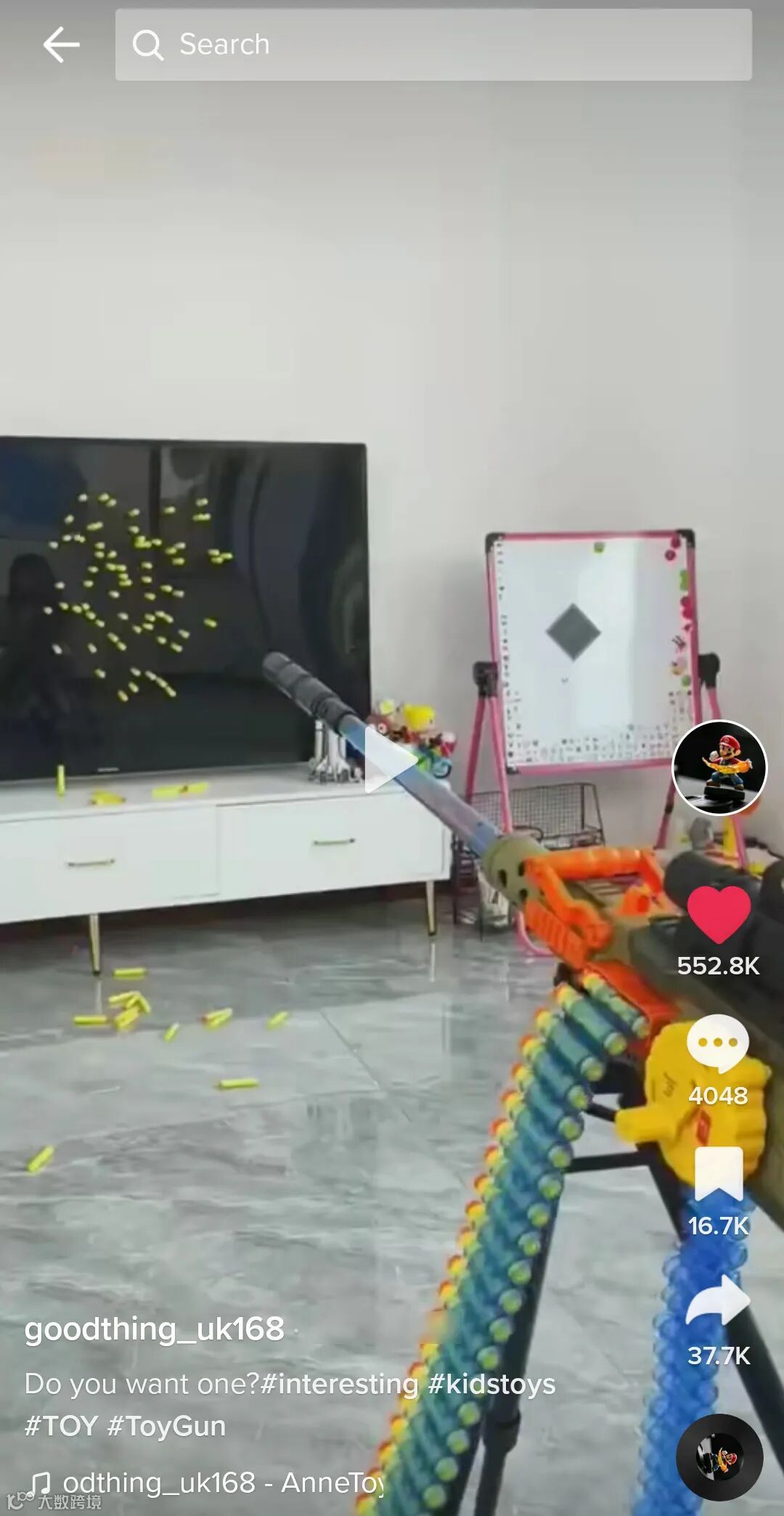 坚锋玩具多款软弹枪在各大海外短视频平台播放量逾千万,全年海外视频平台的播放量约达10亿次以上,成为当之无愧的网红产品。