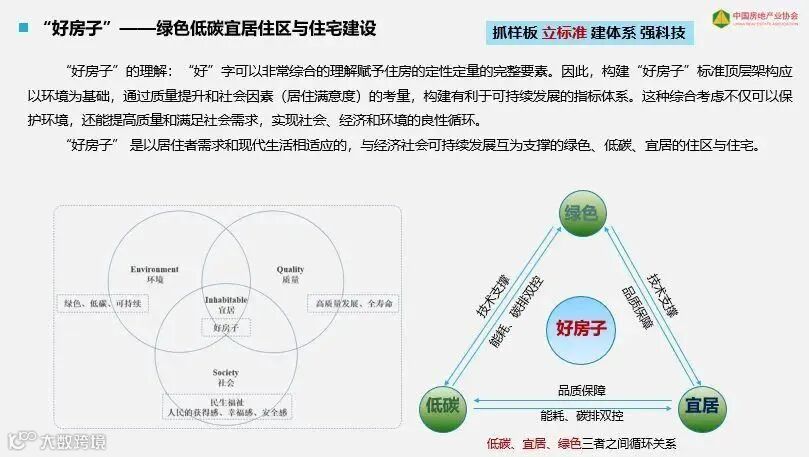 2025年1月1日,由中国房地产业协会人居环境分会、中国建设标准设计研究院有限公司、东南大学建筑学院主编的《绿色低碳住宅标准》正式实施。标准及其系列研究成果,将为行业开展“好房子”、“好小区”评价认证提供支撑。