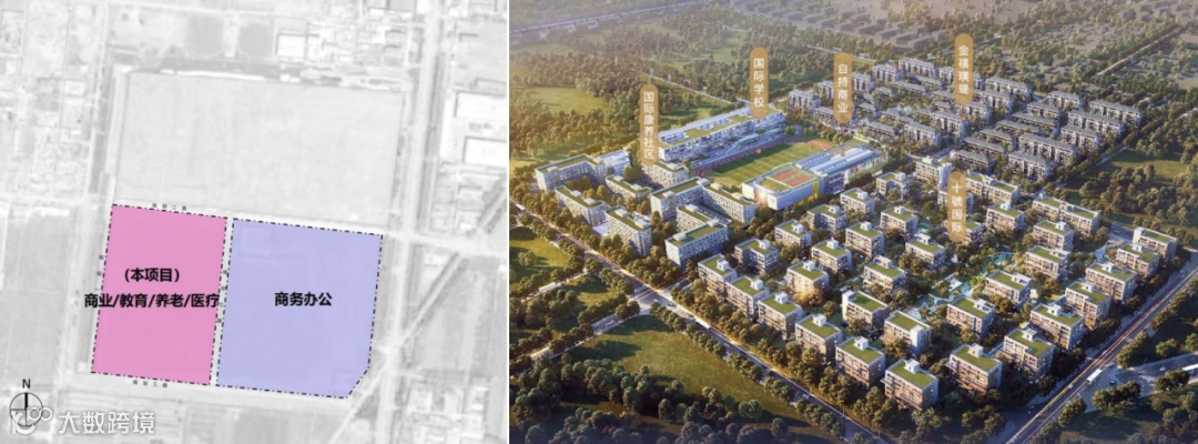 本项目打造国内首个跨代共生项目(CROSS GENERATION COMMUNION),构筑以养老、医疗、教育、商务办公和商业为一体的全龄生态圈。总体规划不以用地本身为边界,而是放眼整个高丽营镇。基地中央绿地是整个项目最大的开放空间,西侧为高端教育培训机构,东侧为商业中心,南侧展开高段养老和医疗社区,各业态相互独立且又相互融合。中央绿地是整个社区居民进行运动、社交、聚会活动的最佳场所。