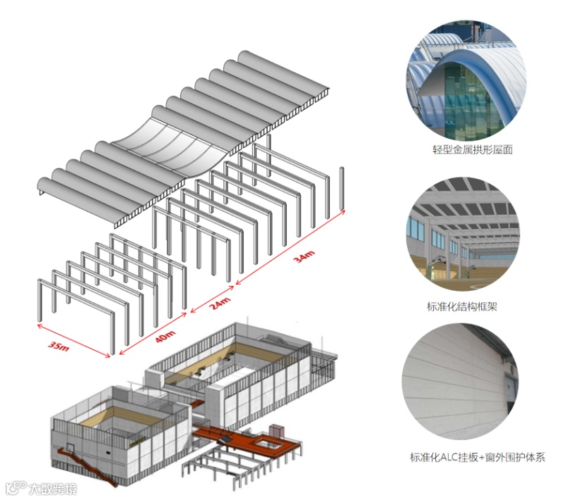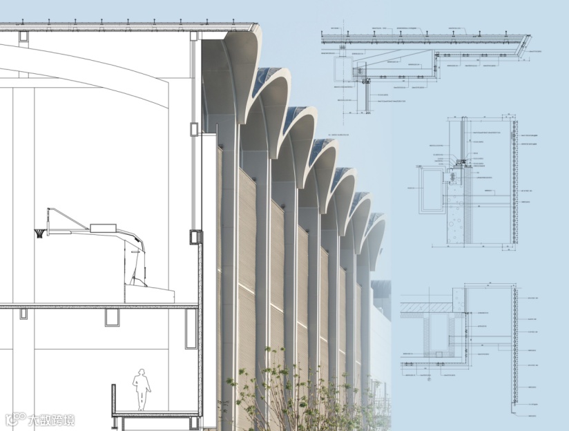 项目自设计到竣工落地仅一年时间,在此过程中,装配式应用效能显著。轻型金属拱形屋面的运用,不仅结构稳固、承载力强,而且安装快捷、易于维护,有效降低了建筑整体重量,同时赋予了建筑独特的视觉美感。