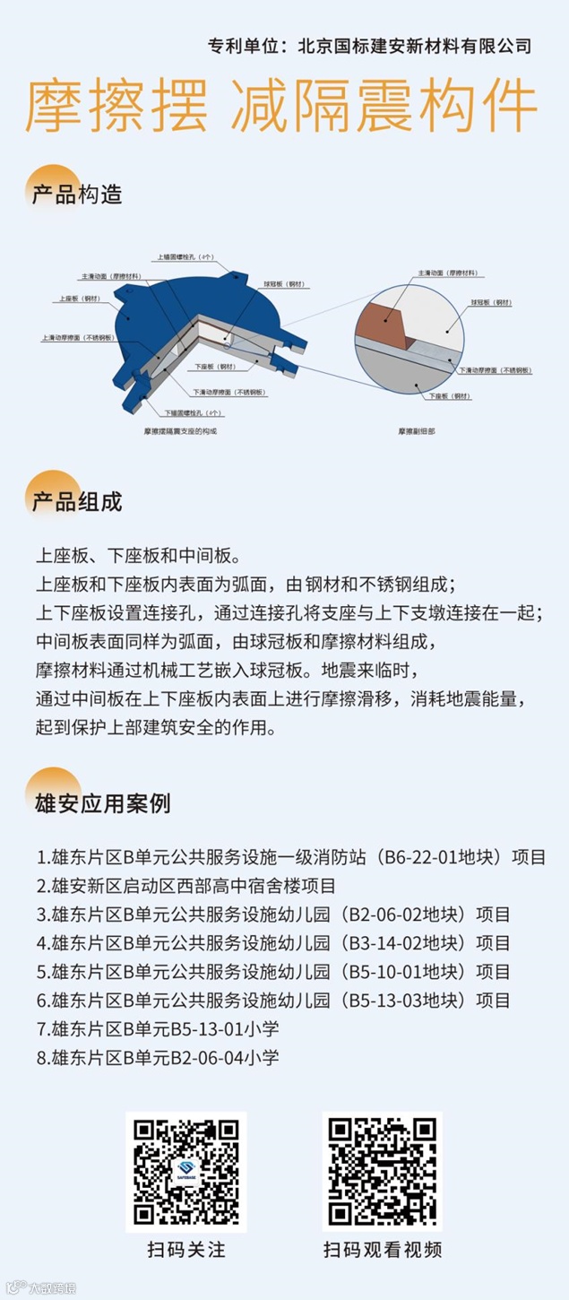 同期,还将展出由中国建筑标准设计研究院有限公司下属北京国标建安新材料有限公司研制的高性能摩擦摆隔震支座。