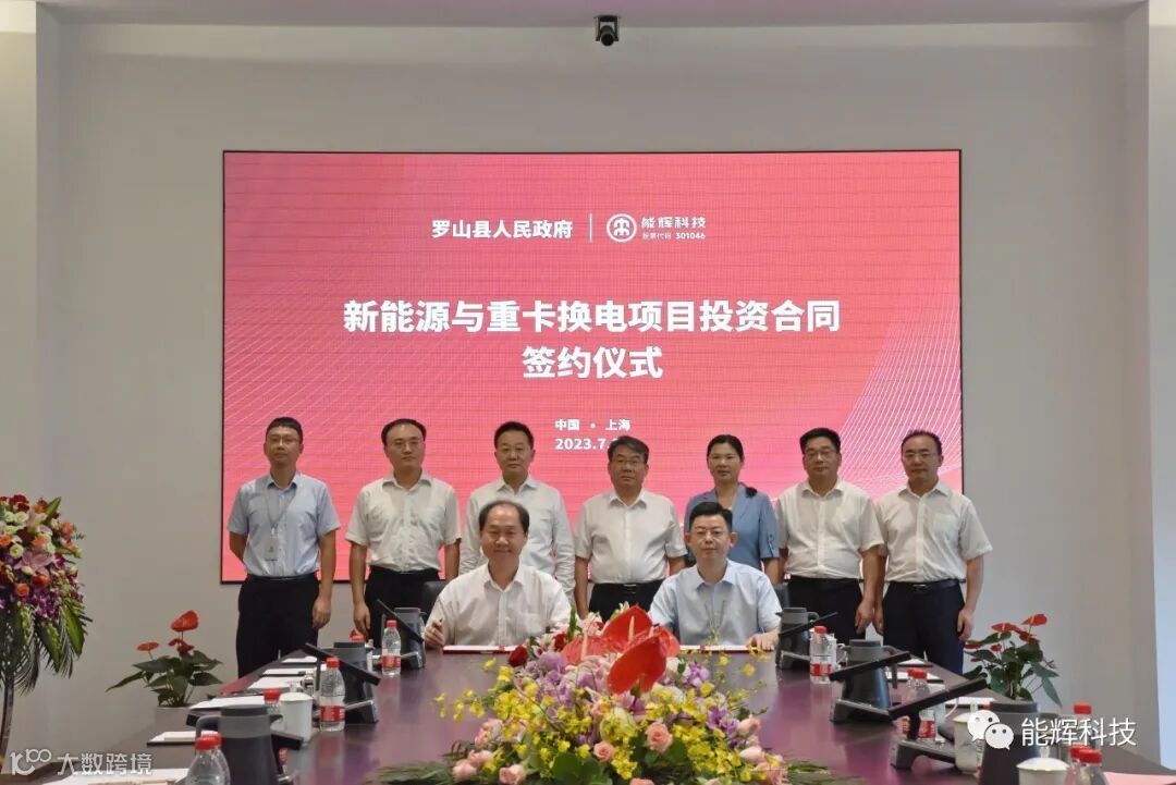 7月29日上午,能辉科技在上海总部举行签约仪式,分别与罗山县人民政府、罗山宝城建投公司签署新能源与重卡换电项目投资、合资及100台换电重卡启动两份重要合作文件。