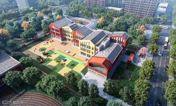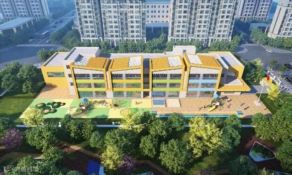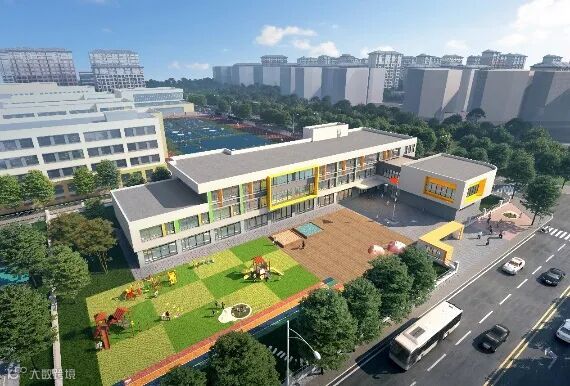 该小学36班,总建筑面积约2.76万平方米,于2023年底竣工。建筑呈合院式布局,院落空间和功能空间相互错动,为学生提供了更多的室外活动场地。建筑立面以白色为主,与周边建筑风貌相协调,变化跳跃的彩色窗户仿佛是一个个彩色的音符,萦绕在小朋友们的时光乐园。