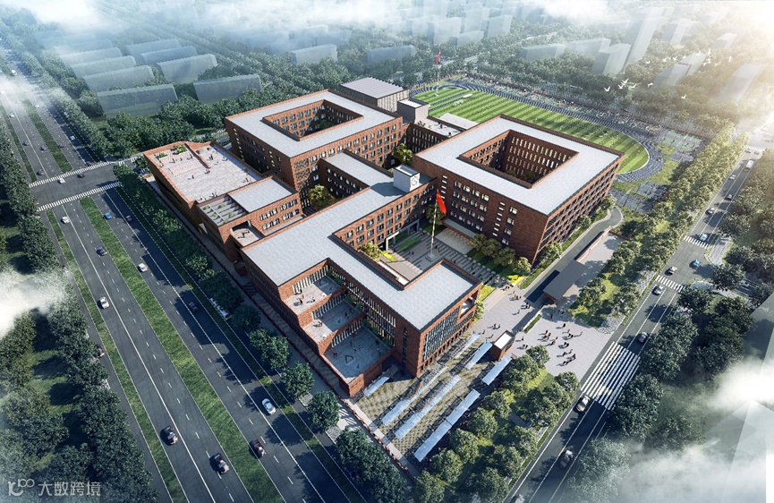 启动区西部高中项目为一所48个班级,1920名学生规模的高级中学,校园整体设计采用模块化功能布局,教学单元由三个“口”字型环环相扣而成,内部流线串联起三个年级的教学区、运动区和生活区,外部形体摒弃以往传统的独栋建筑设计思维,通过退台处理创造更多屋顶平台,丰富校园竖向景观层次,同时提供高效可达的活动场地。
