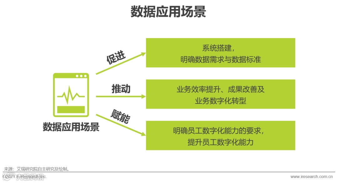 (三)以数据应用场景明确员工数字化能力的要求,并通过实践提升员工数字化能力。在推动组织及人员数字化提升的过程中,一是要通过业务数据应用场景的梳理及落地,明确不同业务线条、不同岗位所需要具备的数字化能力,并通过能力现状调研及评估,识别现阶段数字化能力短板及痛点,有针对性地进行培训课程设计及落地;二是需要以数字化场景的开发及落地为借力点,“干中学、学中干”是最高效、可行的能力提升路径,通过业务人员对数字化应用场景的深度参与加深业务人员对于数据价值的认可,激发业务人员对数据的感知能力及实际使用能力,促进其主动学习数据分析方法和工具来提升业务成果。