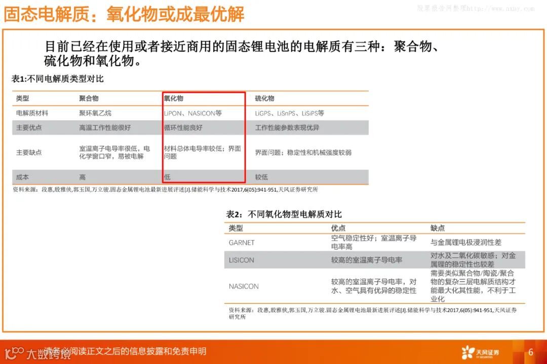 氧化物固态电池电解质物料价格低廉且电芯易组装,封装成本低。只要解决氧化物电解质大规模量产的技术问题,固态电池的量产成本或可以与液态电池相媲美。