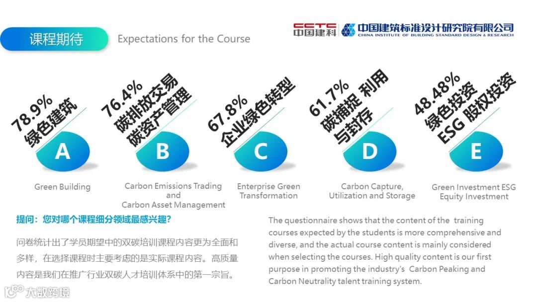 中国建筑标准设计研究院在“十四五”战略规划指导下,积极研究建筑业多层级减碳的技术路线,将六十余年的科研经验进行成果转化,面向全国提供减碳综合服务。面对国际化人才的迫切需求,依托城乡建设领域专业技术人才优势,开展双碳国际人才的研究和培训体系搭建。我院会继续深度参与中英两国的科技合作,推动技术进步、成就建筑梦想,携手共建双碳未来!