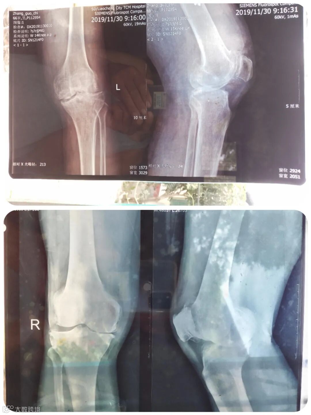 2019年11月30日,张国池老人在山东聊城中医院的膝关节影像及诊断书