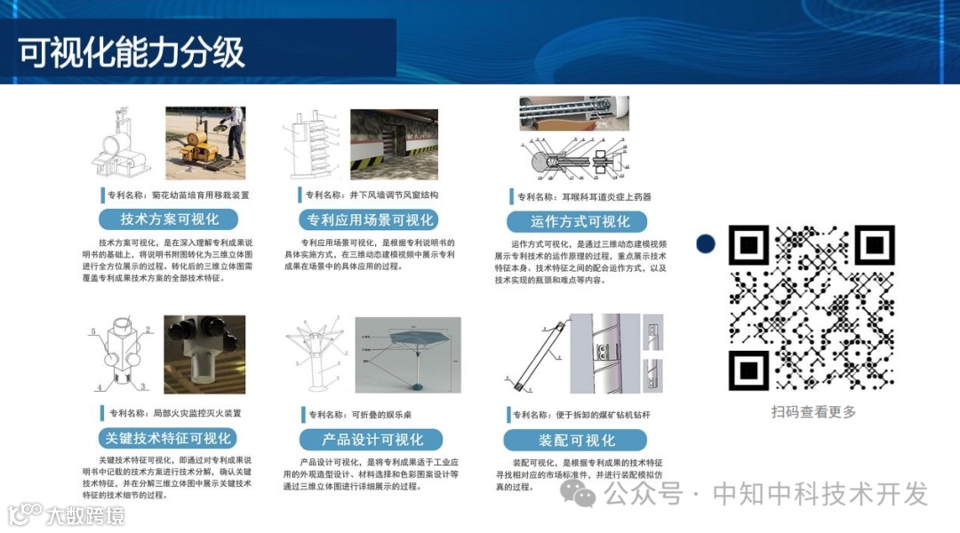 所以说,前期的盘活存量专利,筛选和分类很重要,通过专利转化分级筛选应用去支撑一项专利转化前期的相关数据。将专利文件内容进行可视化处理,转化为具体的图像和数据,企业和高校可以更直观地理解专利的商业价值和应用前景。