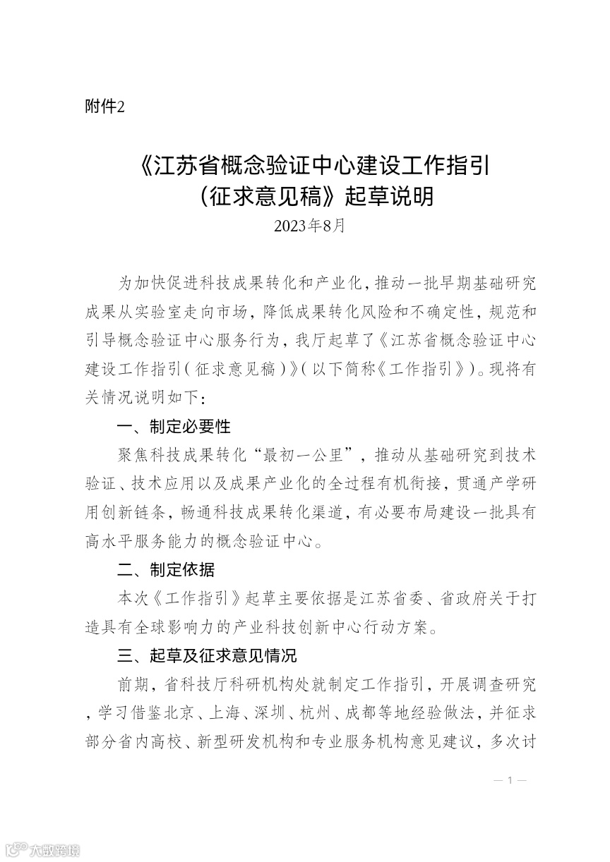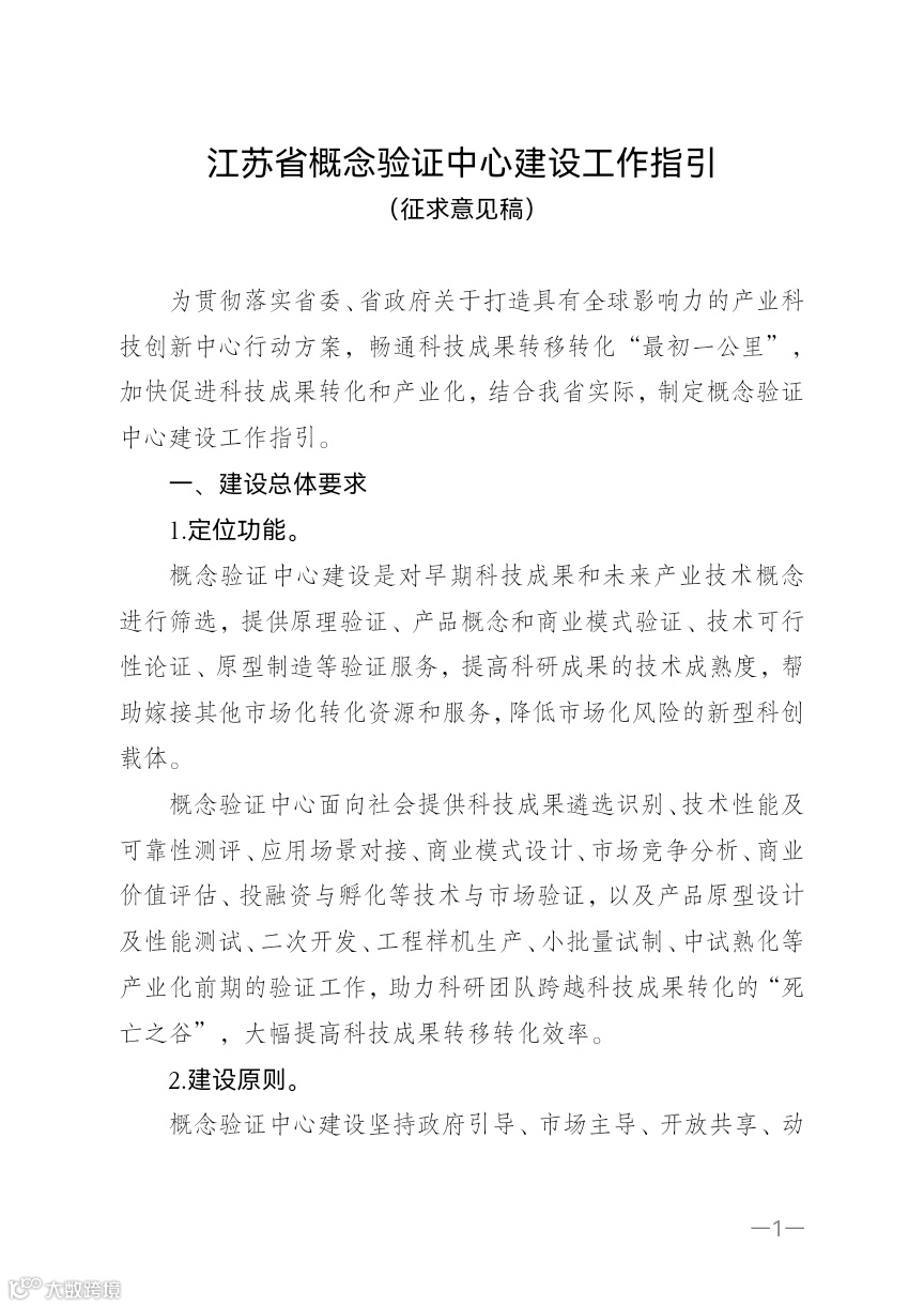 江苏省概念验证中心建设工作指引(征求意见稿)