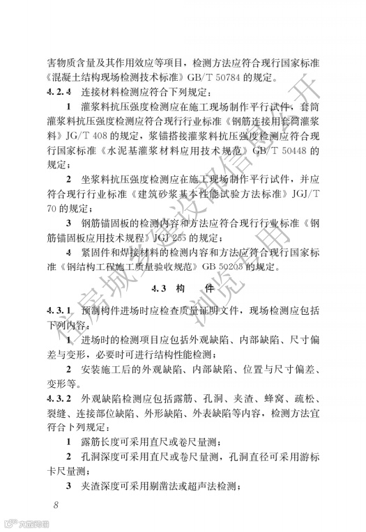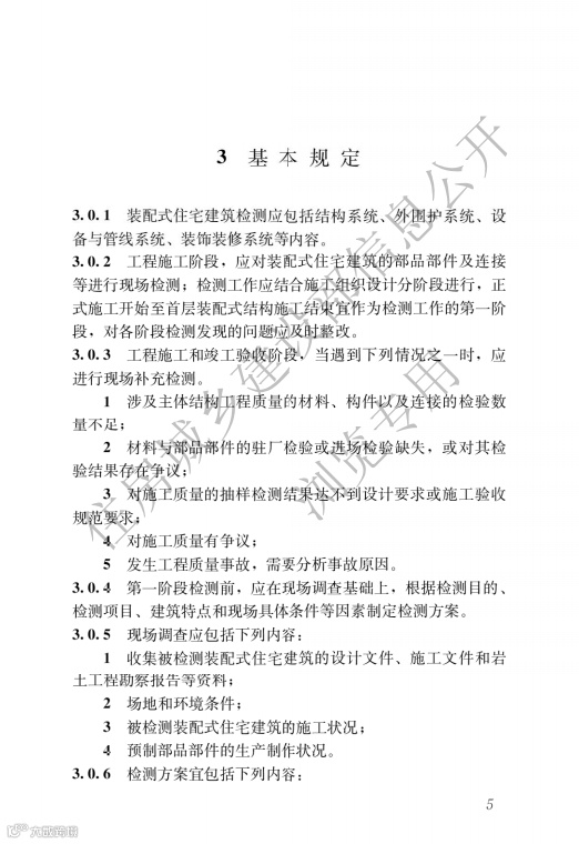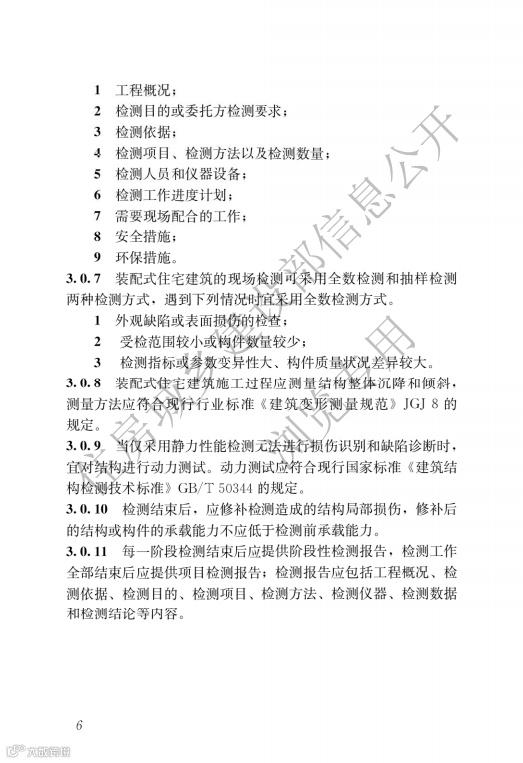 该标准适用于新建装配式住宅建筑在工程施工与竣工验收阶段的现场检测。标准明确:工程施工阶段,应对装配式住宅建筑的部品部件及连接等进行现场检测;检测工作应结合施工组织设计分阶段进行,正式施工开始至首层装配式结构施工结束宜作为检测工作的第一阶段,对各阶段检测发现的问题应及时整改。