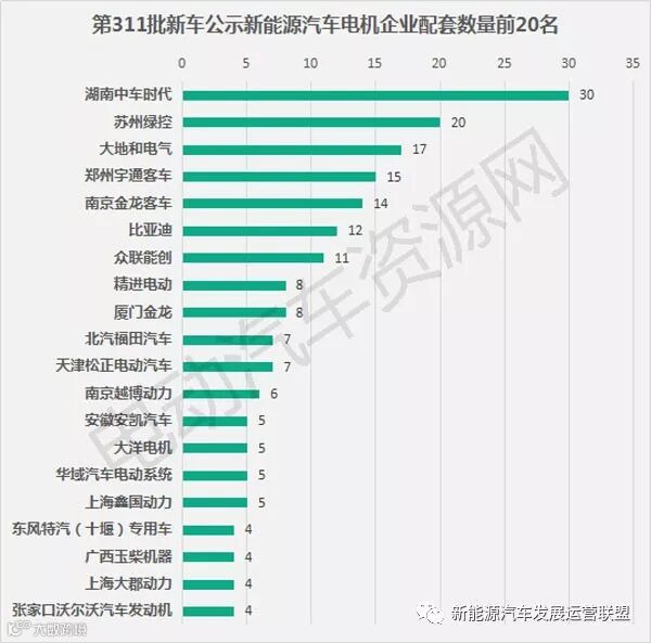 311批新车公示配套电池电机企业排行 宁德时代中车时代分居榜首
