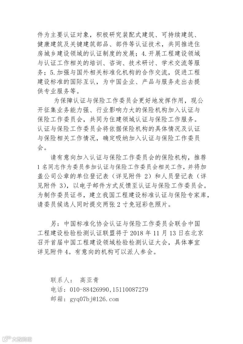 中国工程建设标准化协会认证与保险工作委员会是中国工程建设标准化协会主要开展工程建设标准合格评定与检验检测工作的分支机构,为保障认证与保险工作委员会更好地发挥作用,现公开征集业务能力强、行业影响力大的保险机构加入认证与保险工作委员会,共同为住建领域认证与保险工作服务。具体通知如下: