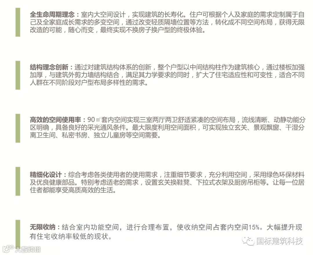 主要特点:全生命周期理念、优良技术与部品、全屋干法施工、全屋无醛体系、全过程BIM应用等30多项最新装配式内装技术。