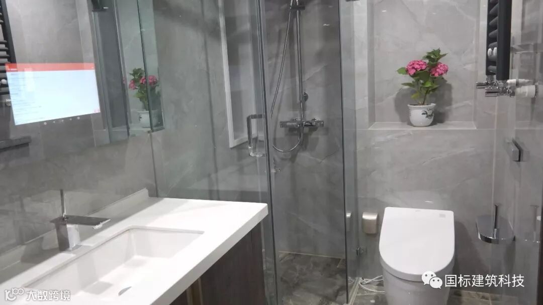 全干式施工,品质优良,良好地解决了卫生间漏水等问题;复合陶瓷薄板、智能魔镜的整体卫生间,效果简约大气。