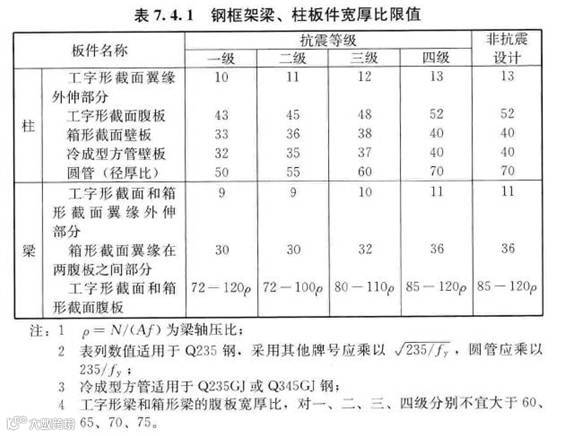 17.修改了框架柱的板件宽厚比限值规定;主梁腹板宽厚比限值取消了适用调幅连续梁的轴压比规定,补充了梁柱连接中梁腹板厚度小于16mm时采用角焊缝的规定;