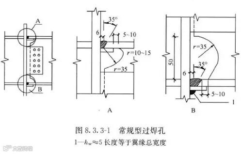 24.增加了梁与柱现场焊接时,过焊孔的形式,提出了剪力板与柱的连接焊缝要求;增加了梁腹板与柱连接板采用焊接的有关内容;