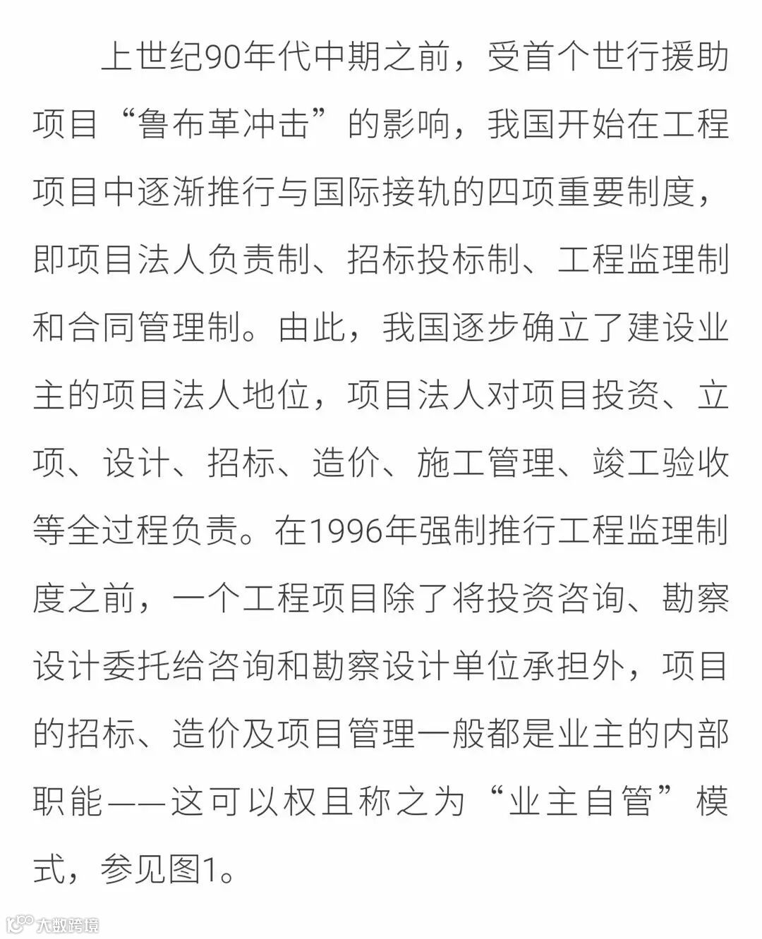 1988年我国开始试点监理制,1996年正式颁布《工程建设监理规定》,实行强制性监理制度。初期,监理职责曾体现出全过程项目管理的特点,即所谓“三控制、两管理、一协调”,初衷是希望在一定程度上代行“业主自管”职能。但在实施中,一方面由于没有坚持国际通行的以设计为主导,使得监理企业技术含量及权威性不足;另一方面由于后来推行造价咨询、招标代理制度,使监理的投资控制和项目管理职能被削弱,逐步导致监理形同虚设,演变成甲方的“质量员”、“安全员”,设计院也只是“画图的”,造成了工程咨询服务的制度性分割——这被专业人士称之为工程咨询服务“碎片化”模式。