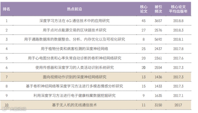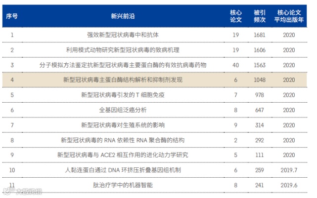 注:表中标黄为重点热点前沿(下同)
