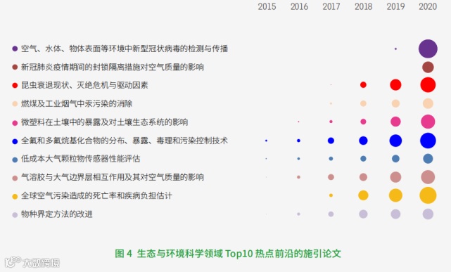 生态与环境科学领域有2个方向入选新兴前沿,即“气候环境因素对新冠肺炎疫情的影响”和“大气二氧化氮水平与新冠肺炎死亡率升高相关”。