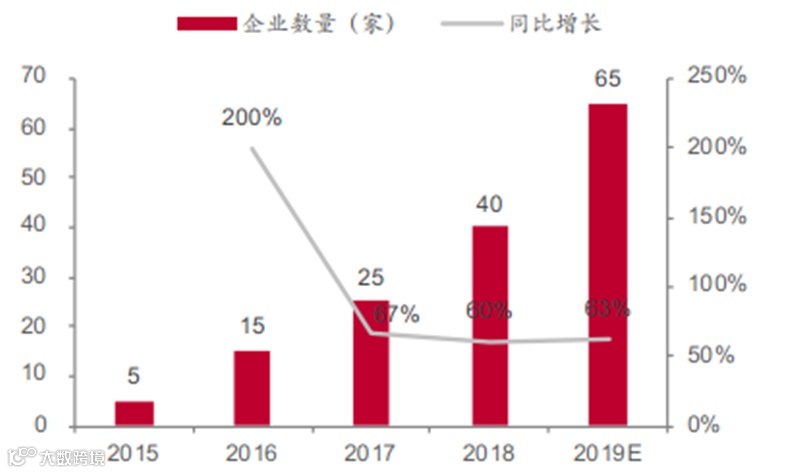 有实际产品、能落地实施做出业绩的智慧灯杆企业数量从2015年5家发展到了如今的40-50家,近三年企业数量增长率均在60%以上。