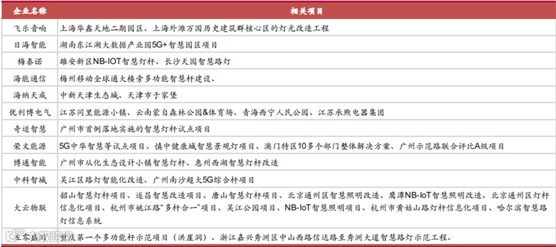 ▲ 提供智慧灯杆成品的传统照明杆塔企业及相关项目 1