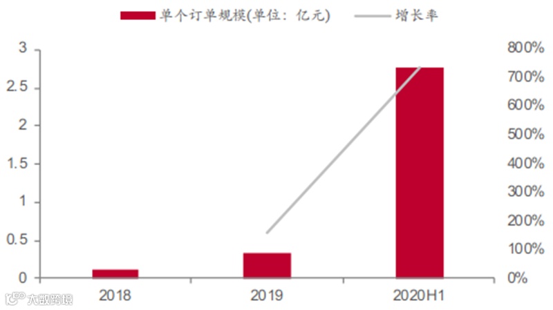 ▲2018-2020H1单个订单规模变化情况