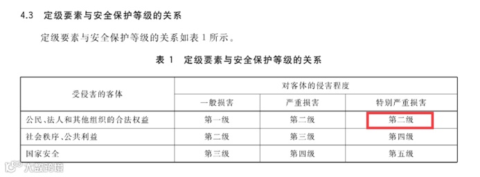 根据2.0的定级指南中定级要数与安全保护等级的关系表我们发现当公民、法人和其他组织的合法权益造成特别严重损害时依然为二级,这块在征求意见稿中是第三级。