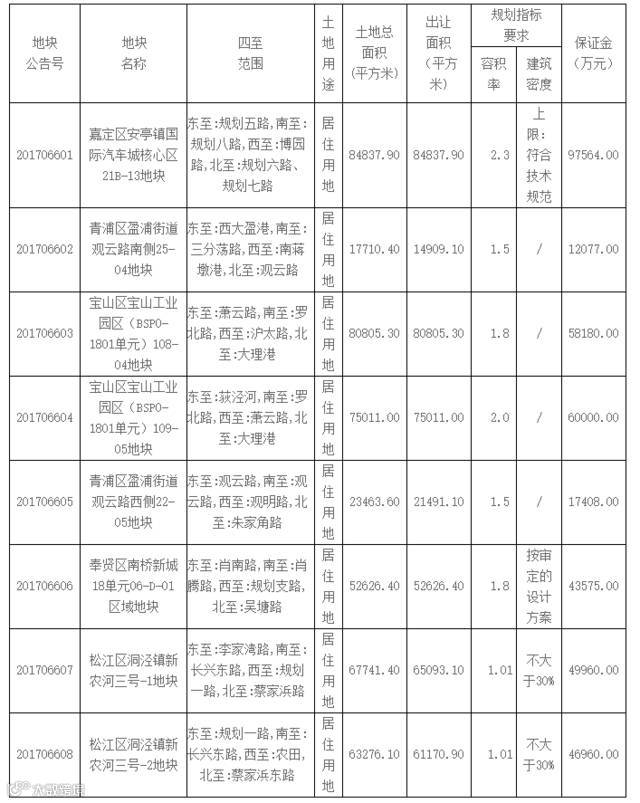 6月21日晚,上海规土局发布上海市国有建设用地使用权出让公告,一口气推出8幅住宅用地,规划总建筑面积近77万㎡。分别位于嘉定区,青浦区,宝山区,奉贤区,松江区5个地区。