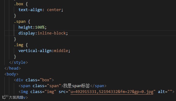 <--vertical-align:middle 是依赖div内子元素最高的行高来实现对某元素居中的,而我们只需要建立一个新元素,给他加上inline-block属性 再把他高度设置为100%就行了,在下面的设置vertical-align就生效了-->